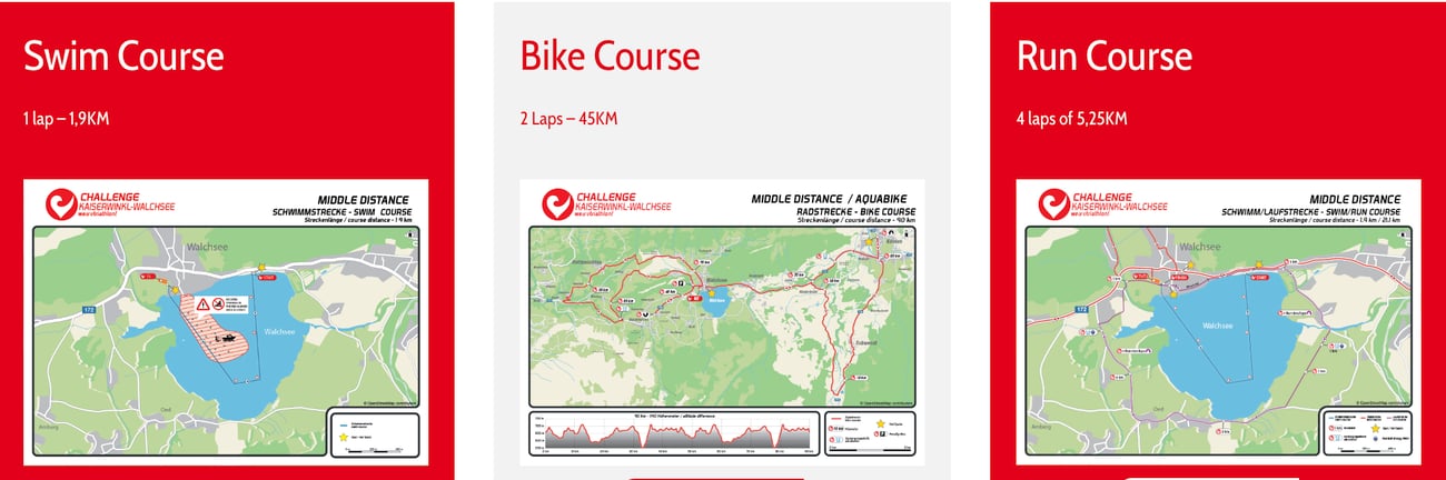 The water of the lake Walchsee is crystal clear and has drinking water quality, the technical bike course leads through the romantic area of Kaiserwinkl with spectacular views of the mountain range of the famous Kaisergebirge The run course also offers spectacular views of the Zahmen Kaiser mountain range and Lake Walchsee.